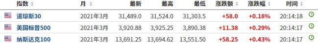 科技股方面,苹果(AAPL.US)盘前涨0.25%,Facebook(FB.US)盘前涨0.23%,亚马逊(AMZN.US)盘前涨0.18%,微软(MSFT.US)盘前涨0.10%。