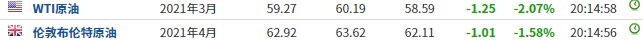 截至发稿,WTI原油跌2.07%,报59.27美元/桶。布伦特原油跌1.58%,报62.92美元/桶。
