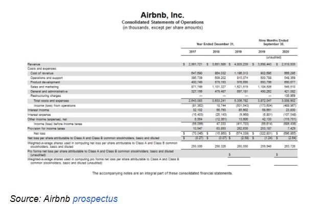 下面的柱状图显示了以收入百分比衡量的运营成本和费用。请注意,自2017年以来,Airbnb的收入成本一直稳定在25%,因此它似乎很好地处理了持续实现75%的毛利率。