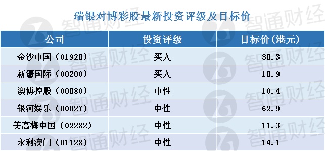 瑞银维持对澳门博彩行业“中性”看法,行业首选金沙中国、新濠国际(00200)及新濠博亚(MLCO.US)。