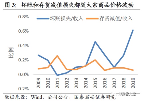 在经济上行期,大宗商品供应链公司的坏账和存货减值风险下降,估值有望回升。