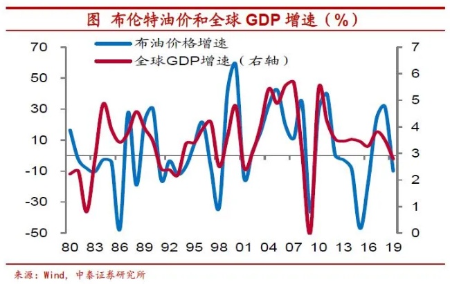 归根结底,需求状况决定着大宗商品价格变化的方向。虽然大宗商品价格的影响因素较为复杂,但从根本上说,其变化方向是由需求强弱来决定的。以原油为例,其价格经常随着地缘政治冲突、气候变化等供给因素波动,但如果将1980年以来的布伦特油价格增速和全球GDP实际增速相对比,会发现两者走势高度一致。LME铜价和OECD综合领先指标之间也有较强的相关性,两者都说明了需求状况是大宗商品价格趋势的主导。