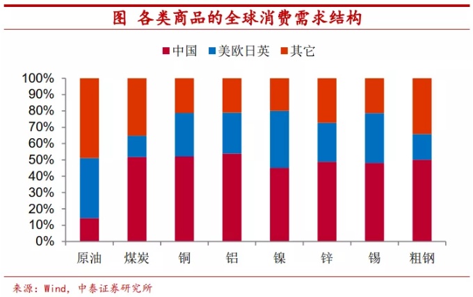 发达国家消费越多,价格上涨更为突出。由于发达国家复苏或将好于新兴市场国家,这对于大宗商品而言,意味着发达国家需求占比较高的品种,在这轮价格上涨中将有更好表现。其中原油首当其冲,美国、英国、欧元区和日本四大经济体在原油消费上占比高达37%,远高于其它品类。