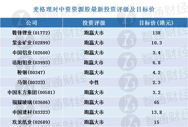 麦格理预计,“再通胀”投资主题短期持续,预计在全球电动化、去碳减排及中国新基建支持下,铜、铝、锂及钴的长期基本面将改善。该行重申今年首选:赣锋锂业(01772)、洛阳钼业(03993)、紫金矿业(02899)、福耀玻璃(03606)、中国建材(03323)、玖龙纸业(02689)及信义玻璃(00868)。