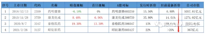 行业先驱者,前三大CRO龙头药明、康龙、泰格均已A/H两地上市新股,无一破!