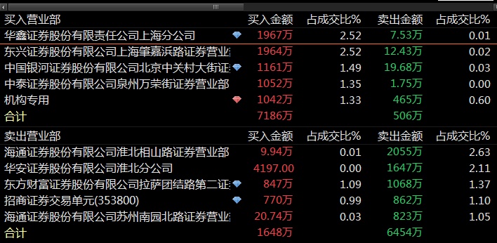 章源钨业(002378.SZ):有一家机构买入1042万元,买入的资金相对均衡,筹码结构较好,封板之后一直很稳定,总体处于锁仓的状态,预计会有较好的溢价。