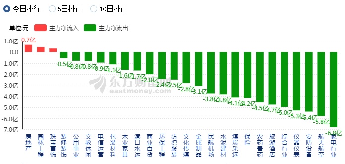 图表分析:大盘下跌,资金基本上都是处于流出状态,而出现净流入的是房地产板块、园林等,主要消息刺激是国家对棚户区和老旧小区改造会继续予以支持。不过从流入的量来看并不大,并不是主流战场。明天如果大盘反弹资金流入板块才是未来的方向。
