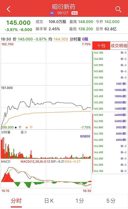 智通财经APP获悉,昭衍新药(06127)将于2月26日(星期五)在香港挂牌。截至暗盘收盘,利弗莫尔证券暗盘交易显示报价145港元,较招股价151港元跌3.97%。每手100股,不计手续费,每手亏600港元。