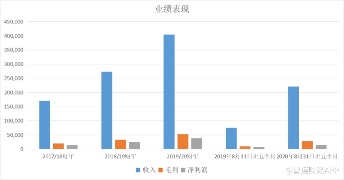 2017/18、2018/19、2019/20财年及截至2019、2020年8月31日止五个月,公司分别实现营业收入1.70亿、2.73亿、4.05亿、7491.8万、2.21亿港元;同期净利润分别达到1404.1万、2515.6万、3840.8万、651.9万、1434.0万港元。