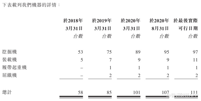 2017/18、2018/19、2019/20财年及截至2020年8月31日止五个月,公司拥有的挖掘机数量分别达53台、75台、89台、95台;装载机数量分别达5台、7台、9台、9台。据最新数据显示,公司机器利用率也均达90%以上。截至2020年8月31日,公司共有雇员140名。