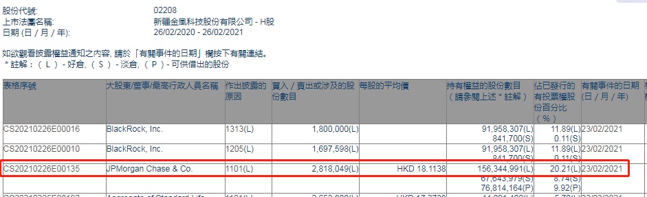 智通财经APP获悉,香港联交所最新资料显示,2月23日,摩根大通增持金风科技(02208)281.8049万股,每股作价18.1138港元,总金额约为5104.6万港元。增持后最新持股数目约为1.56亿股,最新持股比例为20.21%。