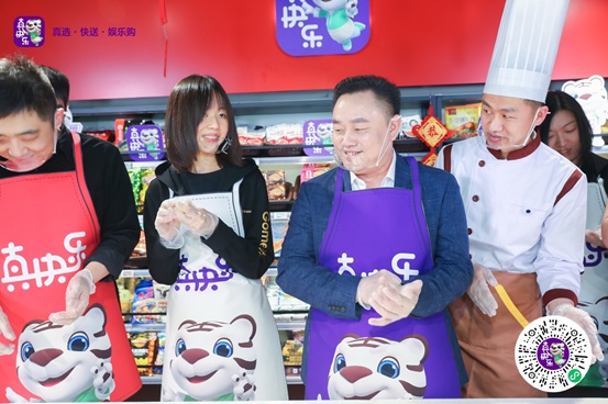 傍晚,身穿藏蓝色休闲西服的黄光裕先生和高管团队一同前往“锅美优食”门店,与员工共度元宵佳节。门店节日气氛浓,展厅里各种百货、零售、酒水、饮料、火锅食材、生鲜水果等真选好物摆满了货架,黄先生和员工们一起包汤圆、煮汤圆,黄先生亲手为门店员工递上一碗碗热气腾腾的汤圆,并通过“真快乐”APP向在场员工派发了新春电子红包。