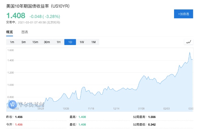 他在接受采访时表示,美债利率飙升对市场的冲击是暂时的,10年期美债收益率或将逐步下跌至1%。上周其收于1.41%,今年迄今已累计上涨约50个基点,处于52周高点附近。