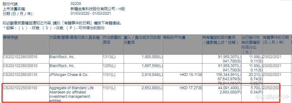 智通财经APP获悉,香港联交所最新资料显示,2月22日,Aggregate of Standard Life增持金风科技(02208)265.38万股,每股作价17.2738港元,总金额约为4584.12万港元。增持后最新持股数目为4409.14万股,最新持股比例为5.7%。