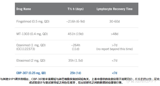 值得一提的是,CBP-307是使用康乃德专有T细胞筛选平台发现的,是至今报道过的临床上活性最强的S1P1激动剂,具有优异的理化性质。在两项已完成的I期随机、双盲、安慰剂对照研究中,CBP-307表现出有效的T细胞调节活性和安全性。