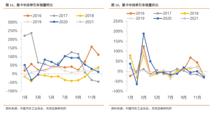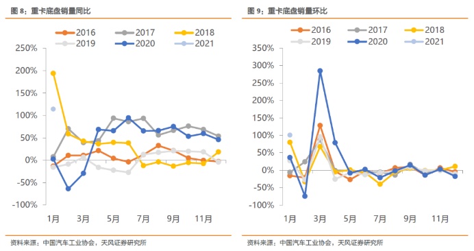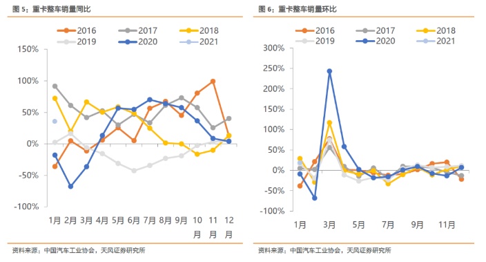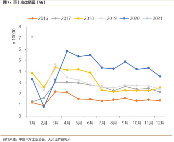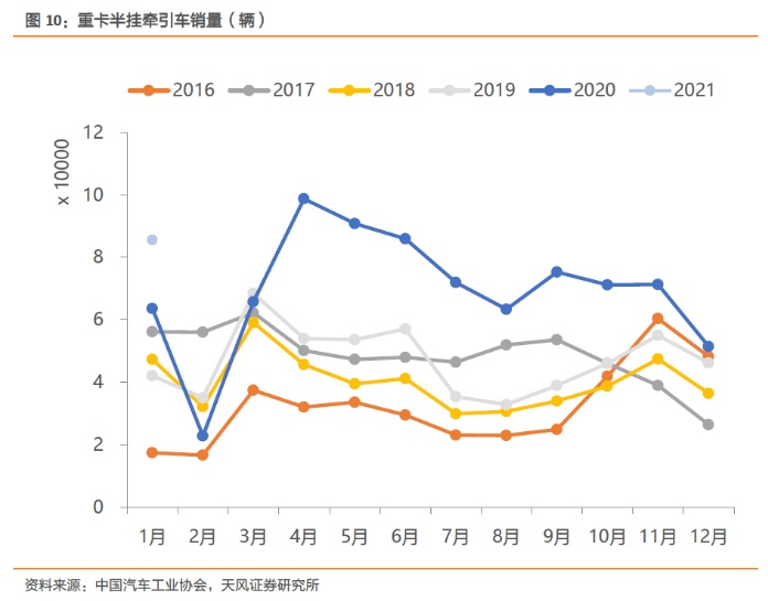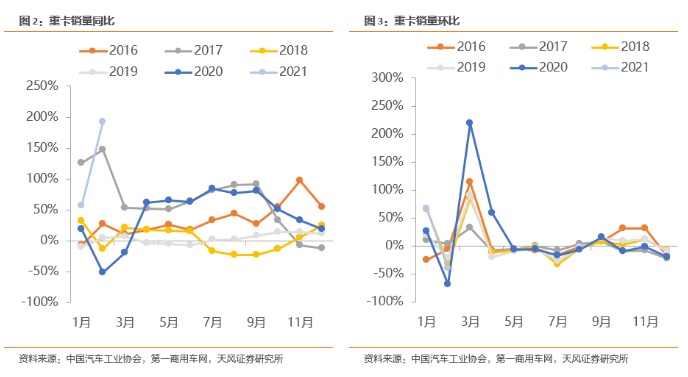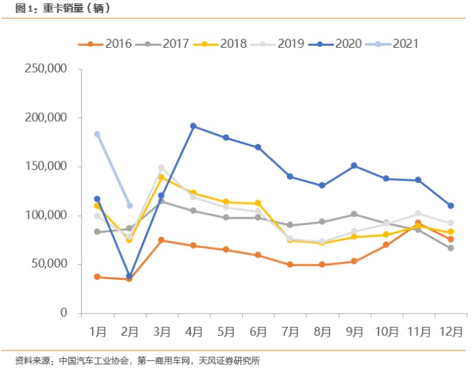 (1)去年2月由于疫情影响,重卡行业产销基本上都接近停滞的状态,销量基数很低,只有3.8万辆的销量;