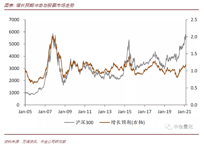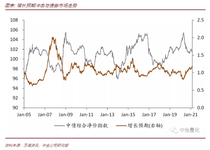 对2021年2月的股债收益驱动力进行分解,增长预期带来正向冲击,流动性带来负向冲击,从而沪深300指数在2月份基本收平,中债综合净价指数在2月份大幅下跌。