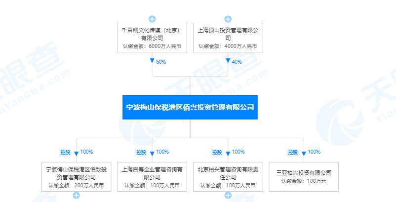 根据股权穿透图显示,该公司由千百糯文化传媒(北京)有限公司(李彦宏持股99.5%)和上海顶山投资管理有限公司共同控股,前者持股60%,为第一大股东;后者上海顶山投资持股40%,是由国寿不动产投资管理有限公司全资控股子公司。李彦宏为该公司疑似实际控制人。