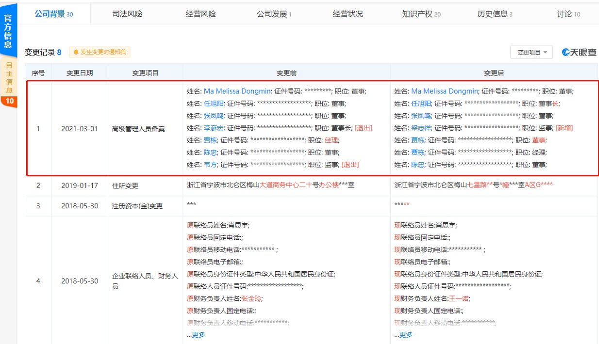 智通财经APP获悉,据天眼查App显示,3月1日,宁波梅山保税港区佰兴投资管理有限公司发生多项工商变更,李彦宏退出董事长,任旭阳接任。此外,韦方退出监事,新增梁志祥为监事,贾栋由经理变更为董事。