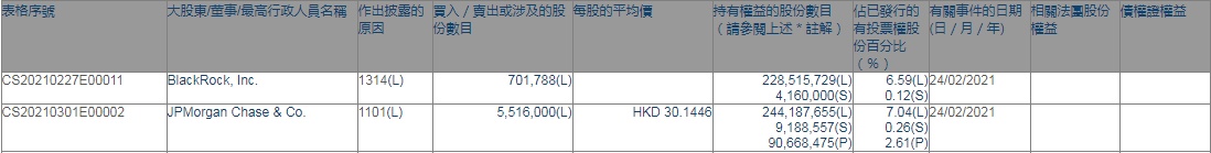 智通财经APP获悉,香港联交所最新资料显示,2月24日,摩根大通增持金蝶国际(00268)551.6万股,每股作价30.1446港元,总金额约为1.66亿港元。增持后最新持股数目约为2.44亿股,最新持股比例为7.04%。