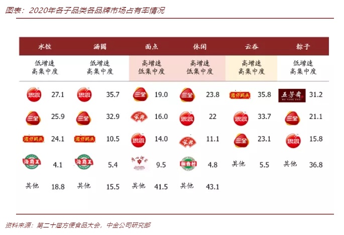 由于速冻食品的制造壁垒较低,现有玩家可通过自产或代工方式迅速跟进爆款产品,因此我们认为未来的竞争会衍生到品牌力和渠道力的比拼方面。这些方面核心考量因素将包括产品定价能力、费用投放效率及渠道力的经销商能力等多方面。