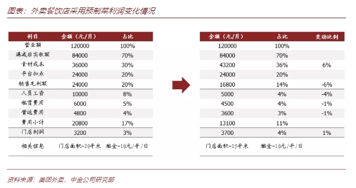 对于规模更大、连锁化经营的餐饮店效果将更加显著。据中国饭店协会调研,国内超过74%的连锁品牌自建有中央厨房,其中超过半数的餐饮品牌正在研发可直接加热享用的标准化半成品,低温保存后配送到门店,简单加工后就可食用。