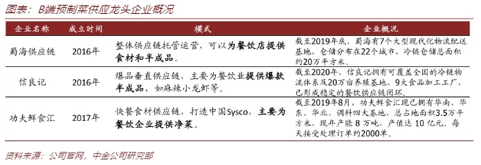 目前预制菜供给端行业集中度低,龙头正跑马圈地。目前的龙头包括海底捞供应商蜀海、做爆款半成品的信良记以及致力于打造中国Sysco的功夫鲜食汇。未来在资本和市场需求的催化下,我们认为龙头有望最大享受市场成长红利。