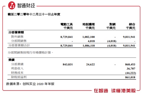 该公司目前业务主要为两大类,一是电动工具类,包括MILWAUKEE专业业务、储存工具及RYOBI等;二是地板护理类,包括充电式清洁工具及地毯清洗机。2020年,电动工具业务收入87.3亿美元,同比增长28.54%,收入贡献88.97%,往年均占据绝对比重,是该公司业绩持续性增长的核心。该业务也贡献着核心利润,2020年业务利润为8.44亿美元,同比增长27.3%,利润贡献97.2%,往年贡献基本超过95%。