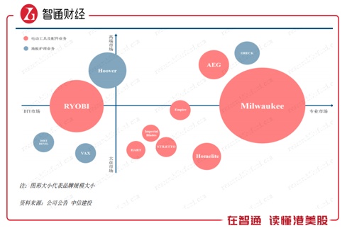 MILWAUKEE主攻专业市场,而RYOBI主攻大众市场,包括低端和高端市场,RYOBI品牌矩阵丰富,根据财报披露,仅在ONE+电池系统便包括123款工具、44款户外产品及15款清洁产品。2021年初将有18款ONE+ HP和7款40伏特HP新产品面世。RYOBI目前是全球第一的DIY工具品牌,行业优势明显。