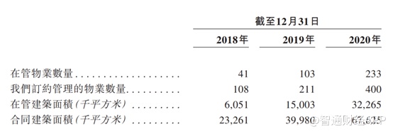 过去三年,新力服务的业务体量经历了翻倍增长。2018年至2020年,在管物业数量从41个增至233个,签约物业数量从108个增长至400个,复合年增长率分别达到了138%和92%。在管建筑面积从605万平方米增长至3227万平方米,合同建筑面积从2327万平方米增长至6763万平方米,复合年增长率分别为131%和71%。