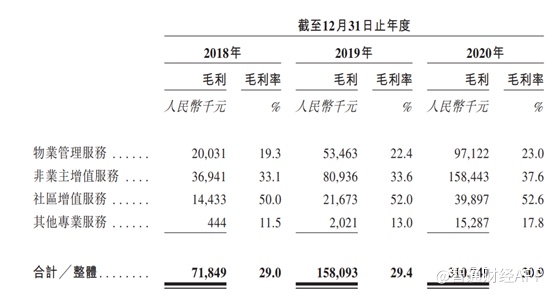 公司呈现营收和盈利能力的同步上升,源于公司的毛利率有缓慢增长,同时费用增长相对较慢。从收入占比均超过四成的物业管理服务和非业主增值服务看,2018年至2020年,其毛利率分别从19.3%增长至23%,及从33.1%增长至37.6%。这使得公司总体毛利率水平从29%略增至30.9%。而同期费用占比最大的行政开支,复合年增长率为75%,远低于营收和毛利的增长速度,因此2018年至2020年,公司的净利润率分别为5.7%、6.6%和10.1%。