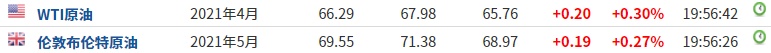 截至发稿,WTI原油涨0.30%,报66.29美元/桶。布伦特原油涨0.27%,报69.55美元/桶。