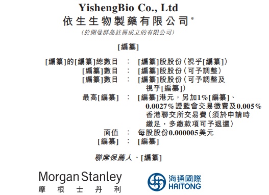 智通财经APP获悉,据港交所3月8日披露,人用疫苗研发商依生生物制药有限公司(以下简称:依生生物)向港交所递交主板上市申请,摩根士丹利和海通国际为联席保荐人。