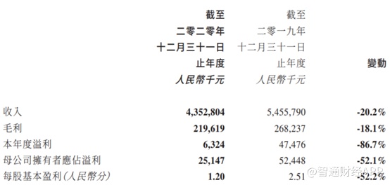 公告显示,2020年华显光电实现收入人民币43.53亿元(单位下同),同比减少20.2%;母公司拥有者应占溢利2514.7万元,同比减少52.1%。