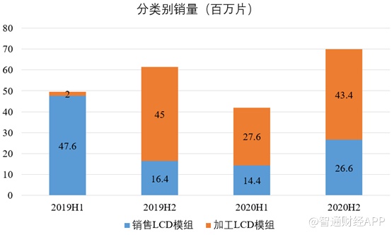 数据显示,2020年全年,华显销售LCD模组4100万片,加工LCD模组7100万片,全年销量为1.12亿片,同比增长1.4%。如分半年报来看,去年下半年华显共销售和加工模组6970万片,远高于上半年的4230万片。