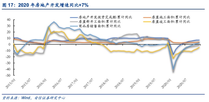 房地产投资持续回暖。根据国家统计局数据,12月房屋竣工面积累计同比下降4.9%,较上月收窄2.4pct;房地产开发投资完成额累计同比上升7%,较上月上升0.2pct;房屋施工面积累计同比下降-4.9%,较上月收窄2.4pct;房屋新开工面积累计同比下降1.2%,较上月收窄0.8pct;商品房销售面积累计同比为2.6%,较上月增长1.3%。
