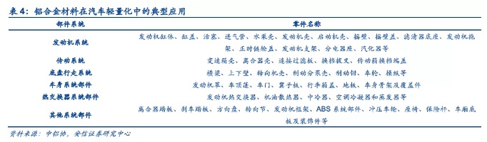铝合金在新能源车轻量化中有其天然的优势。一是减重和节能效果明显,有助于提升续航里程。铝的力学性能好,其密度只有钢铁的1/3,具有良好的导热性,仅次于铜,机械加工性能比铁高4.5 倍,且其表面自然形成的氧化膜具有良好的耐蚀性,因此铝成为实现新能源车汽车轻量化最理想的首选材料。