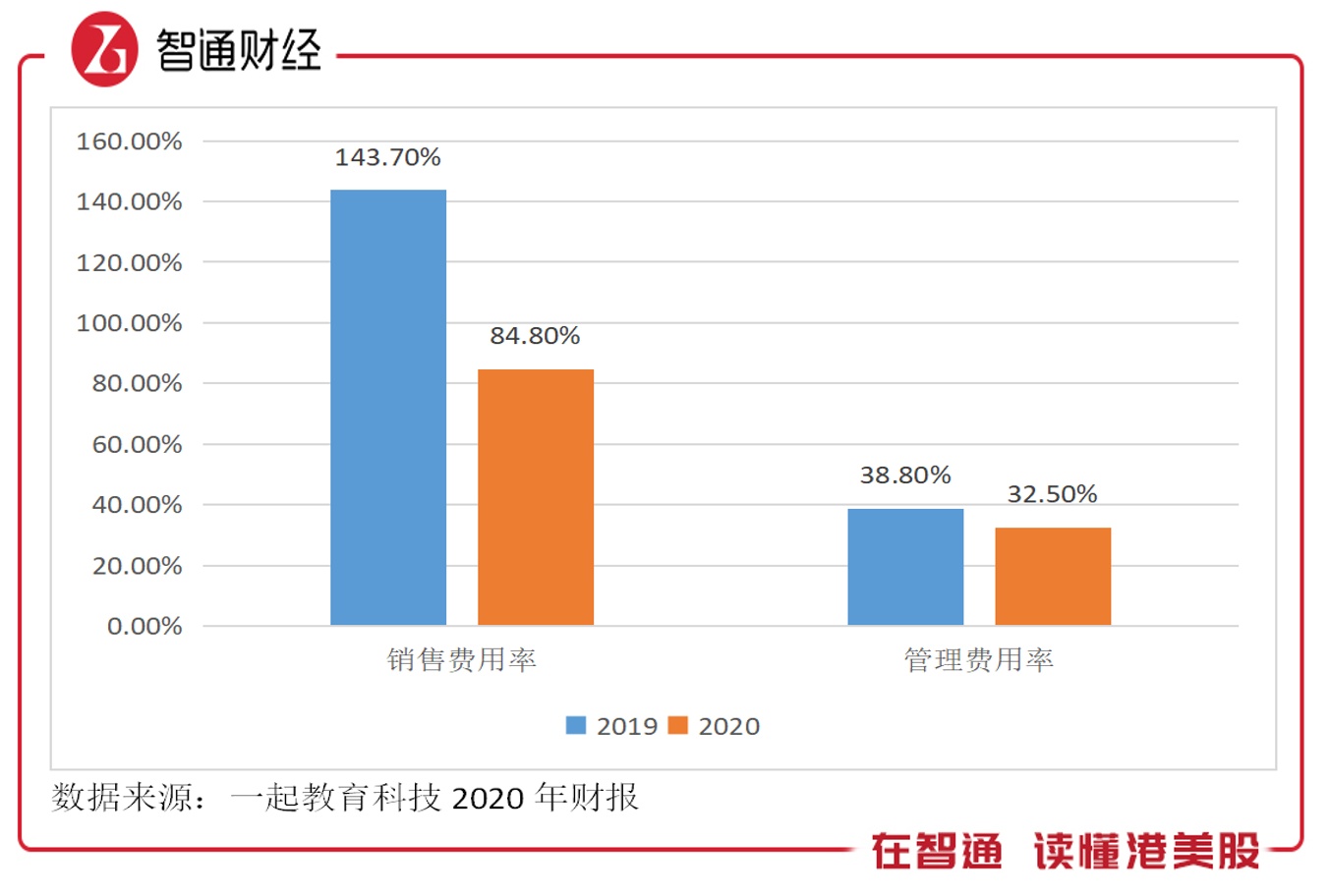 该公司核心的三大费用率中的销售、管理下行明显,2020年销售费用率、管理费用率分别为84.8%、32.5%,而去年同期分别为143.7%与38.8%。