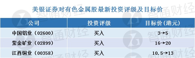 美银证券表示,为反映对铜看法更加正面,上调中国铝业(02600)今明年税后纯利预测分别76%及120%,重申“买入”主因其直接或间接持有铝厂的良好毛利率,预计铝贡献今年毛利的74%,氧化铝则占16%。