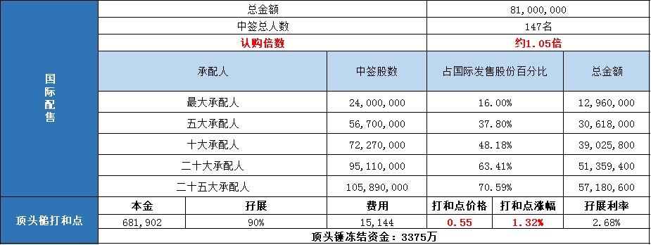 国际配售申购人数未披露,认购倍数约1.05倍。