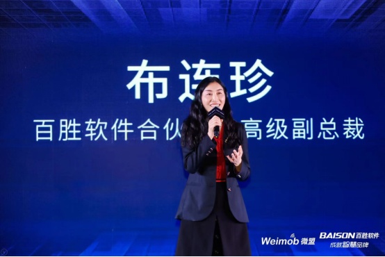 百胜软件合伙人兼高级副总裁布连珍致辞,指出百胜软件是全渠道数字零售解决方案服务商,构建服务零售企业的业务中台+数据中台+技术中台,帮助零售企业沉淀共享服务能力,构建全渠道、布局新零售。本次与微盟的合作,是百胜软件的中台能力和微盟的前端数字零售能力的结合,现阶段微盟与百胜软件共同服务的企业超过100家,涵盖大服饰、美家、快消等几大行业。百胜软件和微盟的合作是行业发展的趋势所致,也是企业需求的推动。双方将发挥各自优势有效协同,致力于为零售行业提供“线上+线下、前端+后台、私域+公域”一套立体的整体解决方案,实现业务的稳健增长。