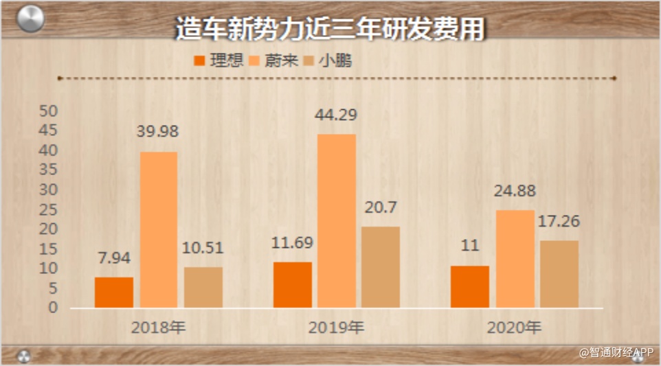 2020年,小鹏汽车研发投入达到17.26亿元,虽不及蔚来的24.88亿元,但随着蔚来2020年研发投入削减近44%,双方的研发投入差距正在缩小。值得注意的是,2020年小鹏研发费用占收入的比重达到29.53%,远高于蔚来的15.3%,较理想11.85%的研发费用率高出近18个百分点。