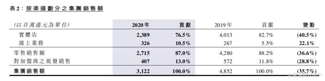 此外,由于受到2020年上半年为使用权资产与物业、机器及设备计提非现金净减值拨备7000万元影响,公司2020年全年实现税后净利润为亏损1.08亿元,上年同期为盈利2.89亿元。