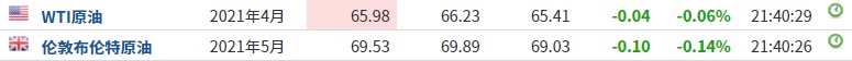 截至发稿,WTI原油跌0.06%,报65.98美元/桶。布伦特原油跌0.14%,报69.53美元/桶。