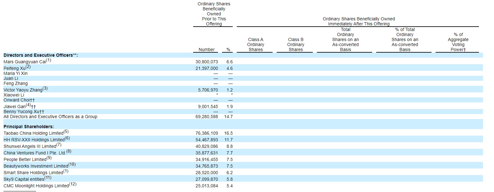 IPO前,公司董事会主席兼首席执行官Mars Guangyuan Cai持股比例为6.6%;