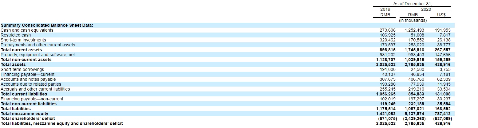 截至2020年12月31日,怪兽充电的现金及现金等价物为12.52亿元(约1.9亿美元),上年同期为2.74亿元;受限制现金为5100万元,上年同期为1.07亿元;短期投资为1.7亿元,上年同期为3.2亿元。