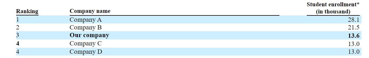 此外,截至2020年9月30日,第一高中教育集团运营着云南省、贵州省、内蒙古自治区和山西省的19所学校网络,为高考复读生提供14个高中课程、7个中学课程和4个辅导学校项目。我们还与中国地方政府和其他第三方合作,预计2021年9月将开办两所提供高中课程的新学校。