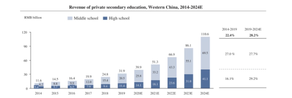 而更得一提的是,在“软硬实力”皆表现不错的同时,第一高中教育集团所处的行业空间也不断增长。