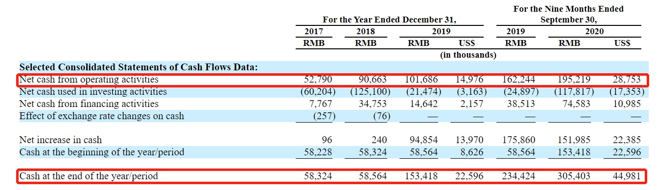另外,现金状况上也相对健康,资金流动性良好。具体而言,2017年至2020年前三季度,其经营活动现金净额一直正向增长,分别为0.53亿元、0.91亿元、1.02亿元及1.95亿元。而同期现金及现金等价物则分别为0.58亿元、0.59亿元、1.53亿元及3.05亿元。