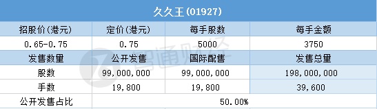 智通财经APP获悉,3月15日,久久王(01927)配售结束。配售招股价区间为0.65-0.75港元,最终定价0.75港元,每手3750港元。